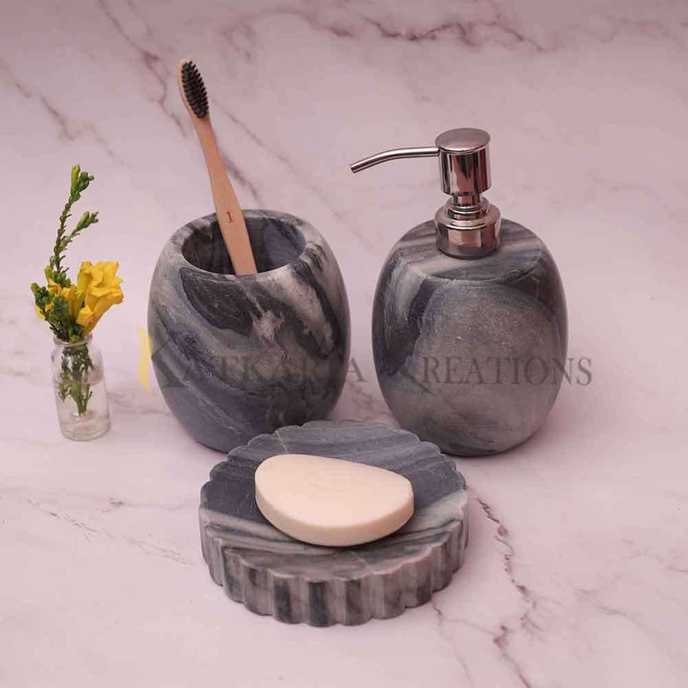 - Includes : Soap Dish, Soap Dispenser, Toothbrush Holder.